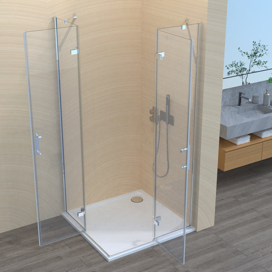Duschkabine Falttür, Eckeinstieg, 6 mm Nano ESG-Sicherheitsglas, Höhe 185 cm