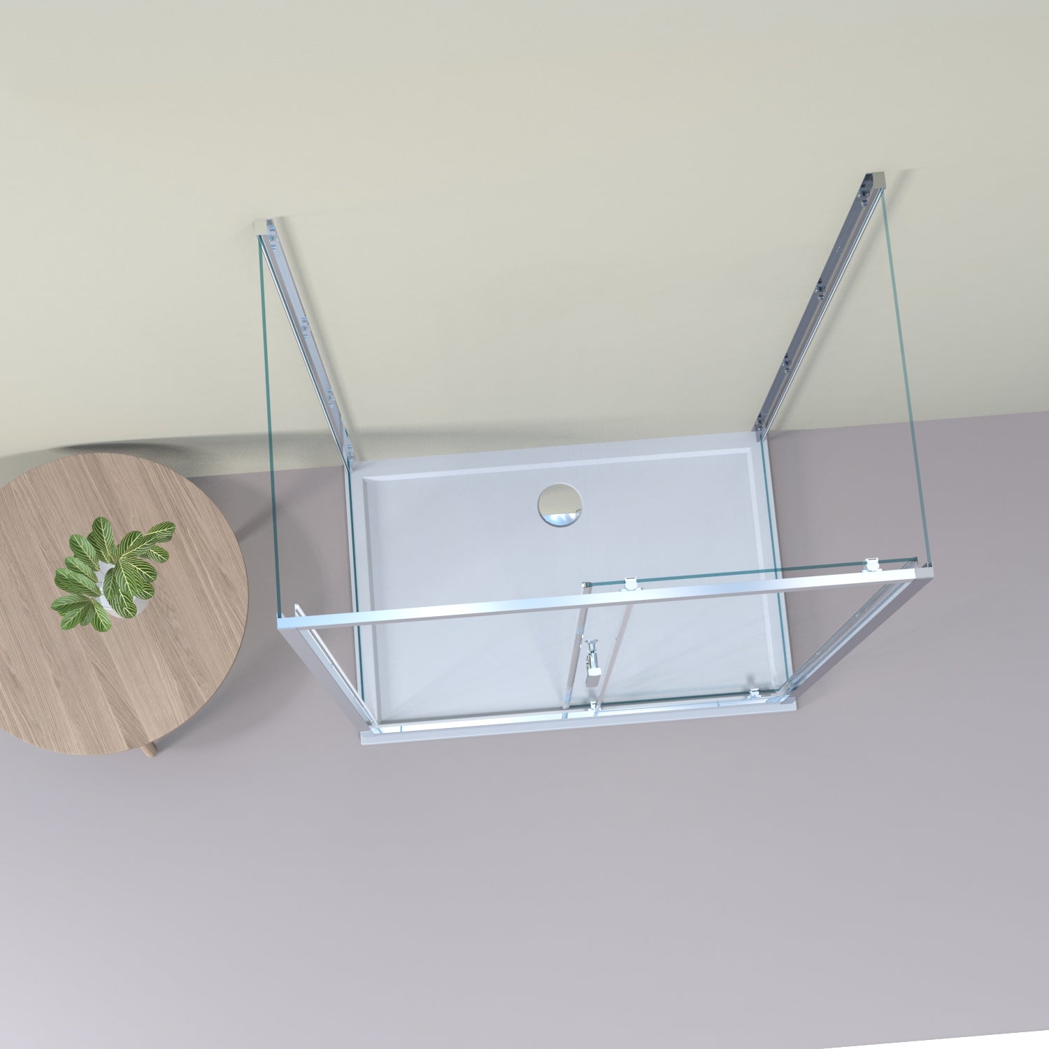 Duschkabine U-Dusche, Schiebetür + 2*Seitengläser, 5 mm ESG-Sicherheitsglas, H185 cm