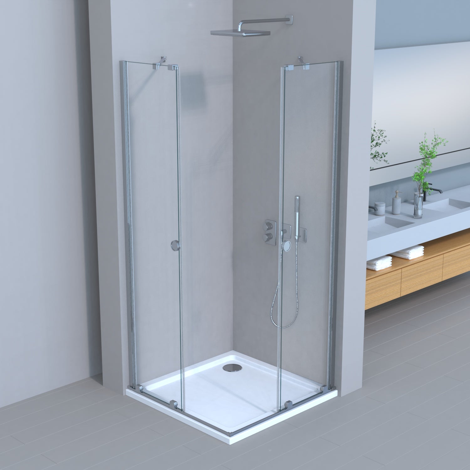 Movable Duschkabine Schiebetür 6mm ESG-Sicherheitsglas, Nanobeschichtung, Eckeinstieg, Duschabtrennung, H185 cm